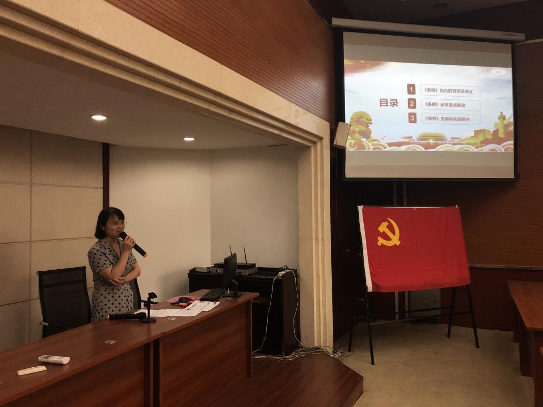 栗民书记首先介绍了《条例》的出台背景和出台意义,明确了认真深入学习《条例》的重要性和必要性。接下来,栗民书记对《条例》中的组织设置、基本任务、工作机制、组织生活、党支部委员会建设、领导保障和附则等进行了逐章重点解读,并对如何贯彻和实践《条例》做了具体要求。