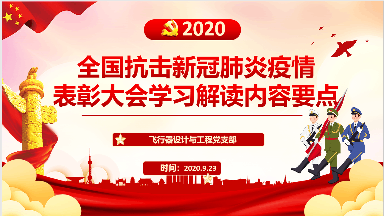 923日下午,飞行器设计与工程系党支部召开以“学习抗疫精神,立足岗位作贡献”为主题的党日活动,全体党员在支部书记鲁丽同志带领下对习近平总书记在全国抗击新冠肺炎疫情表彰大会上的讲话要点进行了深入解读,并展开了积极地讨论和交流。