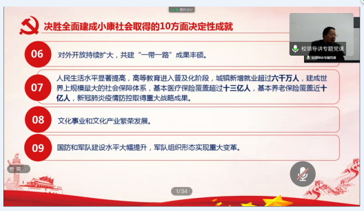 沈火明副书记从一个重要判断、决胜全面建成小康社会取得的10方面决定性成就、我国发展环境面临深刻复杂变化、到二〇三五年要实现的9方面远景目标、“十四五”时期经济社会发展的6方面主要目标、实现奋斗目标的12方面具体举措、中共中央新闻发布会规划《建议》相关情况安排、充分认识做好高校毕业生就业工作的重要意义八个方面讲述了十九届五中全会的核心要义、目标和举措,并结合高等教育规律和就业发展新形势、新要求、学校发展实例进行深刻讲解他强调指出,在今后和当前一个时期,全校党员要把学习宣传全会精神作为一项重要的政治任务,用全会精神武装头脑贯彻落实到我校人才培养和学校“双一流”建设中,以实际行动为培养可担当民族复兴大任的时代新人,为培养德智体美劳全面发展的社会主义建设者和接班人而努力奋斗