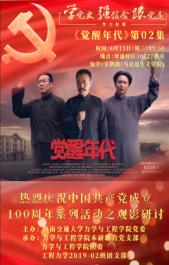 今年是中国共产党成立100周年为深入学习贯彻习近平总书记在党史学习教育动员大会上的重要讲话精神,根据学校党委《关于开展党史学习教育的实施方案》部署,力学学院党委组织开展了庆祝中国共产党成立100周年观影研讨系列活动,引领力学学子“学史明理、学史增信、学史崇德、学史力行”。