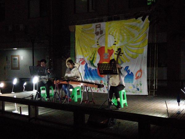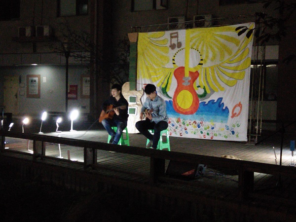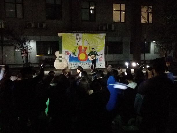 和人文青协合作举办的绿色音乐会正在八教中庭悄然上演。