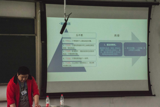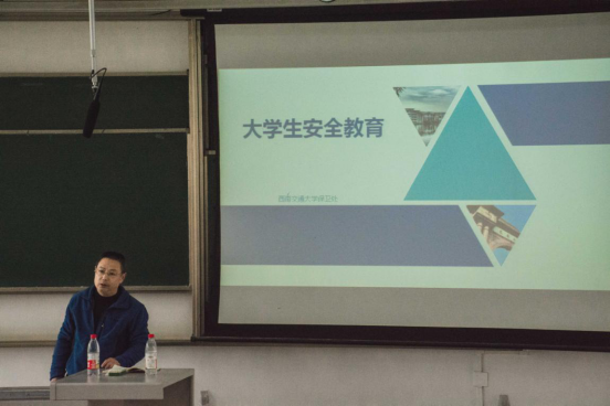 2019年4月4日下午,学院在X2418教室举办了本学期第一次安全知识讲座,内容包括国家安全、治安安全、消防安全、防诈骗、户外及饮食安全交通安全、自然灾害安全、反恐防暴、防毒防艾以及宿舍安全等。本次讲座由辅导员张容华老师主持,保卫处曾轲老师、李为群老师主讲,2018级全体本科生参与了本次讲座