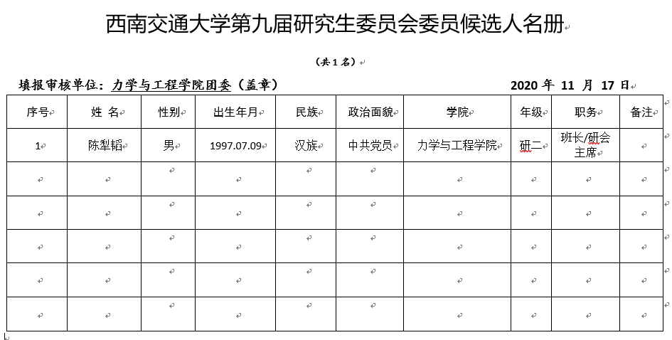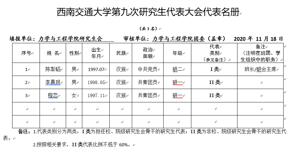 经班级(团支部)和学院研究生会推荐,现将拟推荐参加91直播 第九次研究生代表大会的代表名单与委员名单进行公式。如有异议,请于11月20日17:00前向学院团委反映,地点:X2309,电话:66366796。