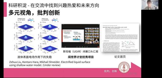 接着,刘泽华同学说明了自己从科创竞赛的优异成绩中的所思所想——即在学习中找到突破边界的自我追求和在交流中找到兴趣热爱和未来方向。