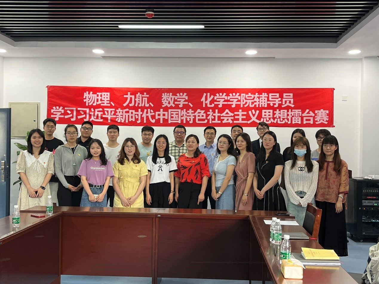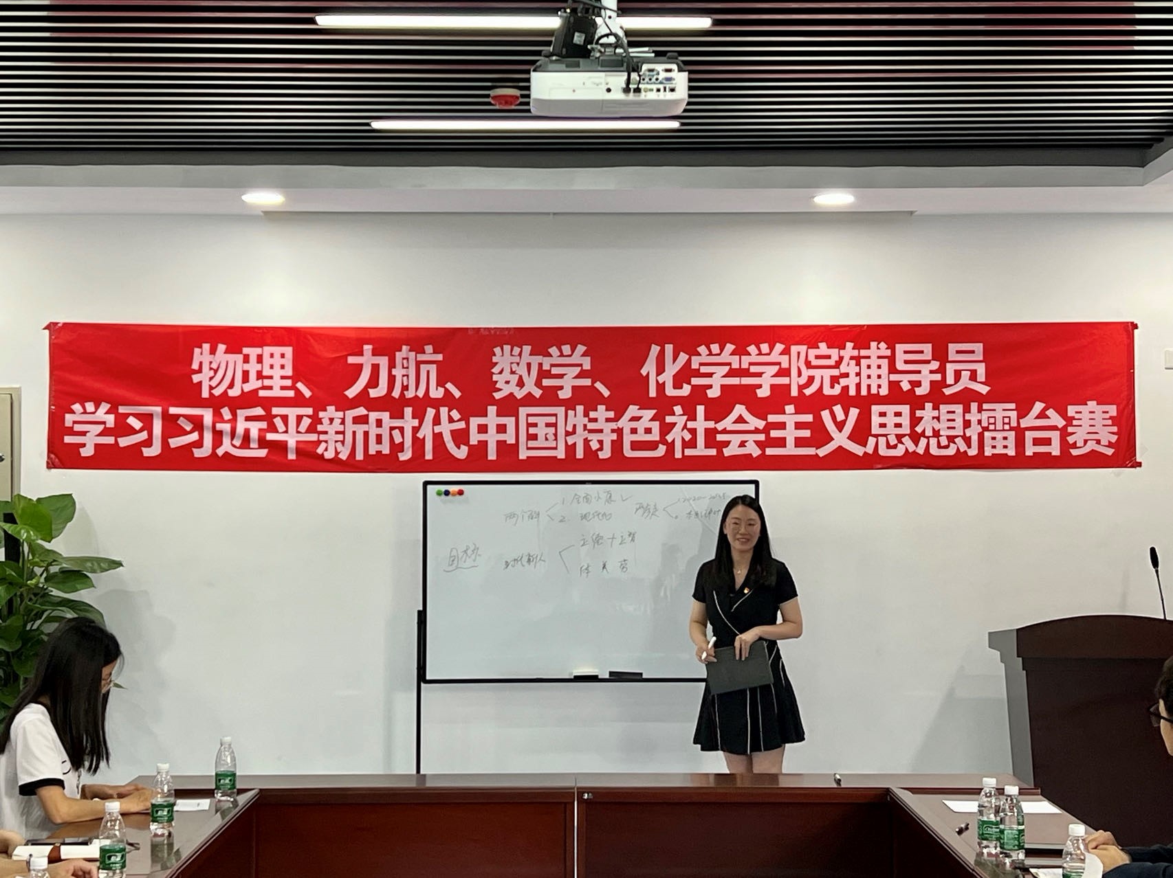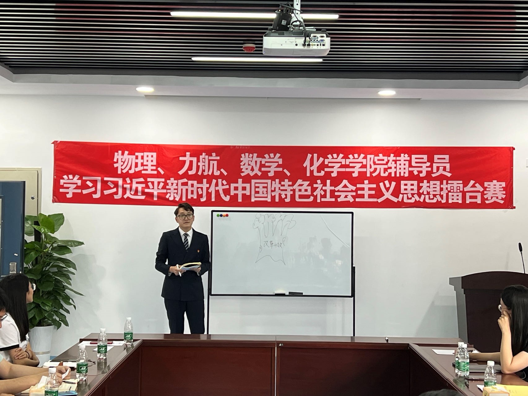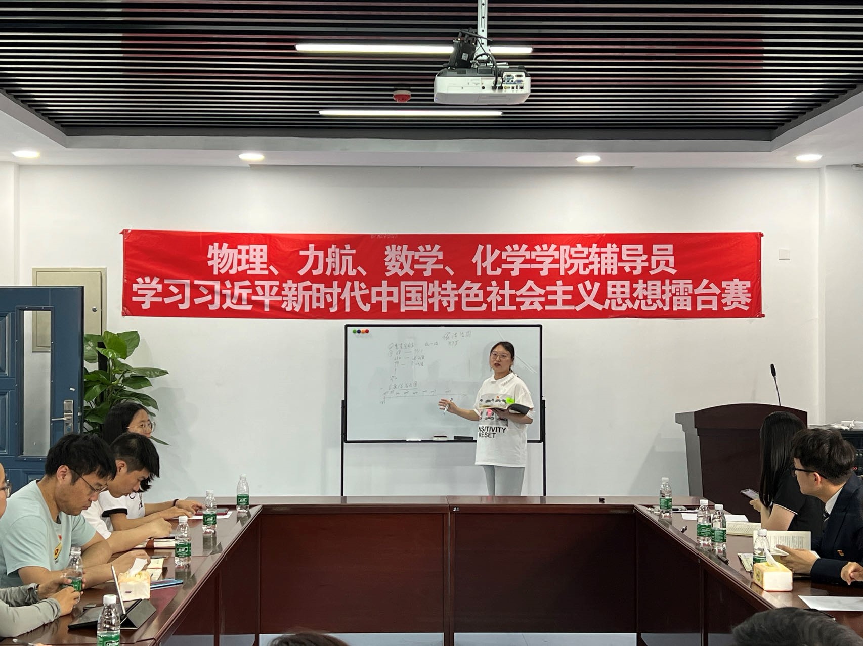 5月17日下午,物理力航数学化学学院辅导员“原原本本学思想”擂台赛第二场在九里校区工业中心C座203会议室举行。物理学院党委副书记郭剑、力航学院党委副书记孔祥彬、数学学院党委副书记黄祥、化学学院党委副书记张春燕以及四个学院全体辅导员参加了擂台赛,本次活动由力航学院辅导员杨婧主持。