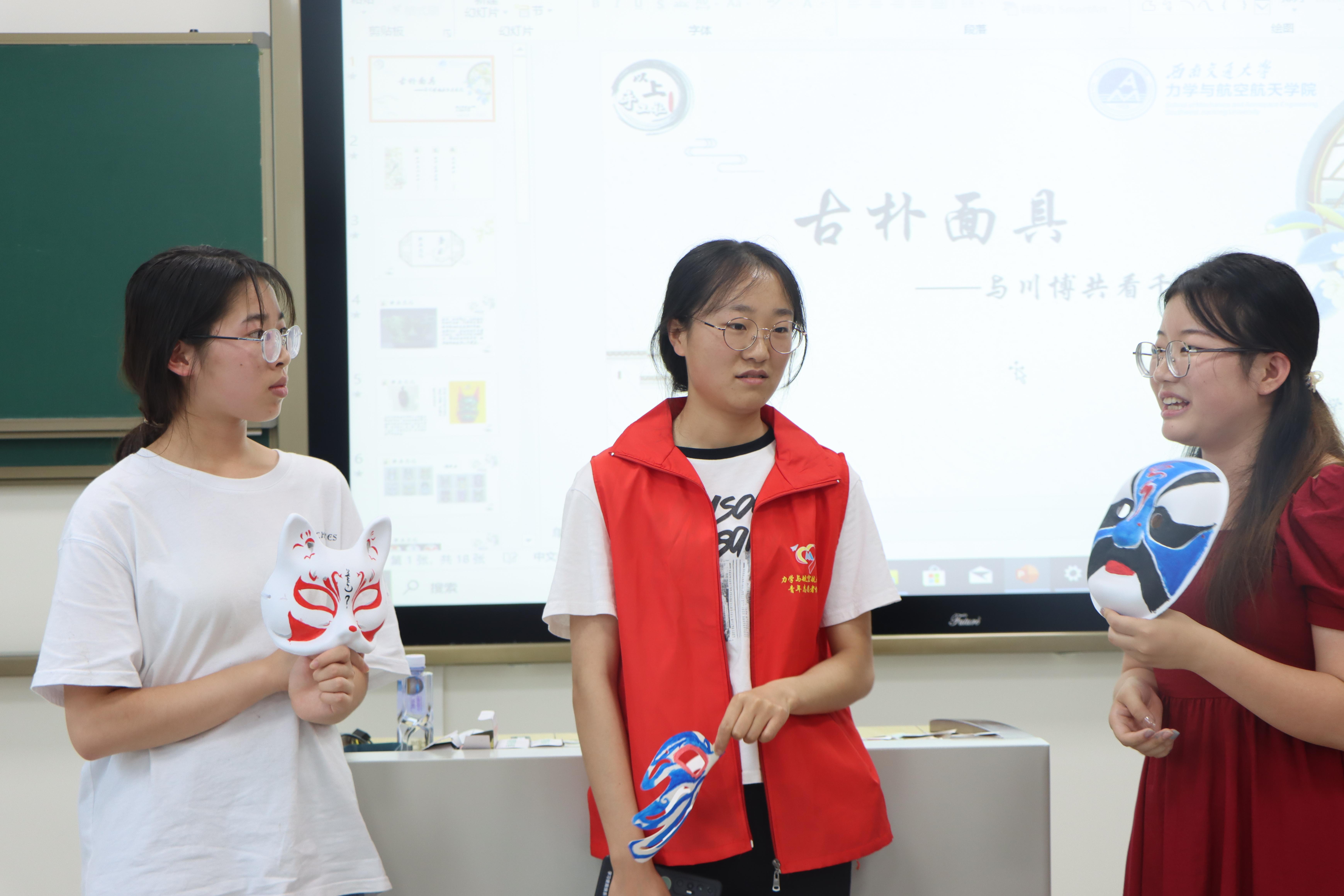 中国博物馆协会会员、四川博物院志愿者委员会委员罗洁进行主题讲座。罗洁介绍川博的人气文物,新石器时期人面形玉佩、水陆共战纹铜壶、唐青釉武士瓷俑引发同学们强烈的逛展兴趣。同时罗洁深入浅出地向同学们讲解了古代面具在四川博物院里的保存、发展与传承的具体过程,用文物案例具体细致地让同学们了解和感受面具背后所蕴含的历史文化以及当今科技发展对文物的保护所作出的贡献。