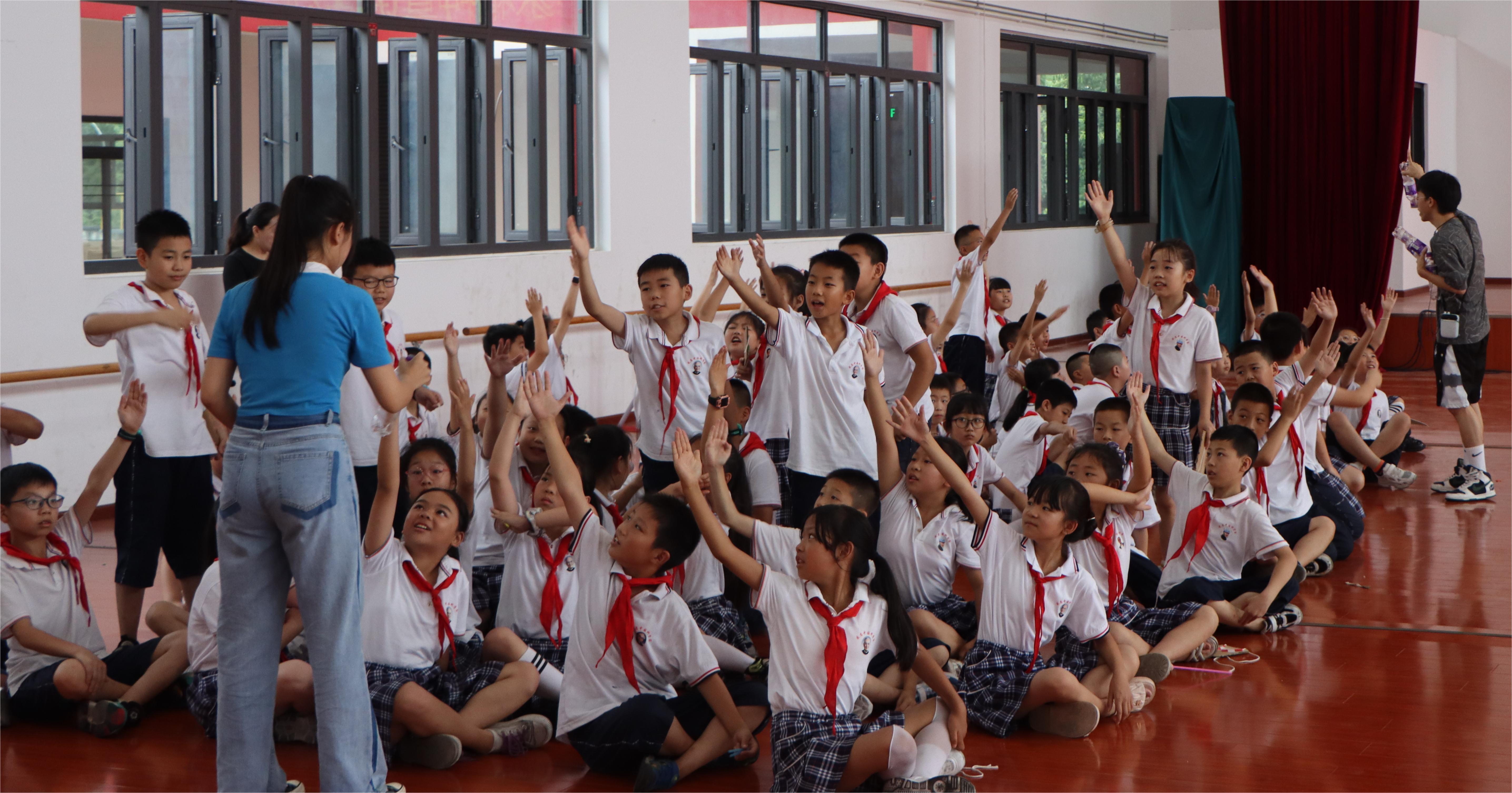 活动开始,实践队成员带领坚勇实小的孩子们学唱歌曲《最美的光》和《中国科学家》,孩子们悦耳的歌声回荡在教室的每个角落。据悉,这两首歌曲均由坚勇实小名誉校长陈永庆先生发起创作,以婉转动听的旋律和朗朗上口的歌词让科学家精神流入听众的心中。