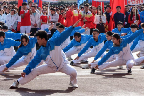 在栗民书记和康国政院长的带领下,全院60名教师和40名同学身着崭新的运动服,精神焕发,昂首阔步,斗志昂扬地走过主席台。同学们用一套传统五步拳向母校献礼,展现了学院师生齐心协力、砥砺奋进的良好风貌。