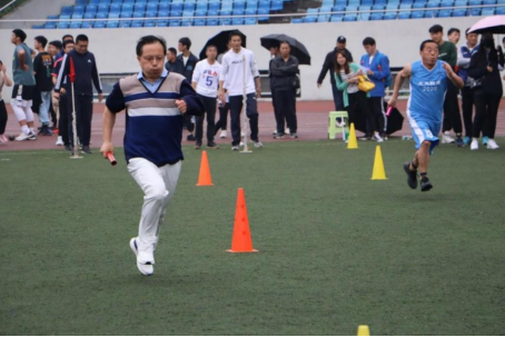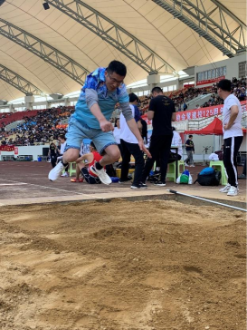 在教工组的比赛中,共有124人次参加,老师们在比赛中挑战自我、展现风采。我院青年教师刘俊杰老师,在教工乙组男子400米决赛中,一马当先,一举夺魁。实验中心储节磊老师以2米57的好成绩拿下教工乙组立定跳远的冠军。