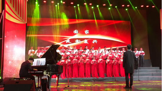 9月29日晚19:00,在中华人民共和国七十周年华诞来临之际,由我校工会主办的“壮丽七十年 奋斗新时代”庆祝中华人民共和国成立70周年师生合唱比赛在九里校区大学生会堂举行。我院党委书记栗民、院长康国政率全院教职工激情献歌,共祝国庆。