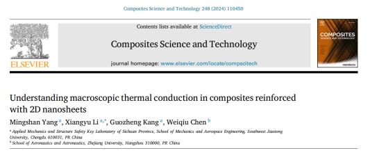 李翔宇教授课题组在二维纳米片增强复合材料的宏观导热性能研究方面取得进展,相关成果以“Understanding macroscopic thermal conduction in composites reinforced with 2D nanosheets”为题发表在国际复合材料领域的顶级期刊《Composites Science and Technology》(中科院一区TOP,IF:9.1)。博士研究生杨名山为第一作者,李翔宇教授为通讯作者,合作作者包括91直播