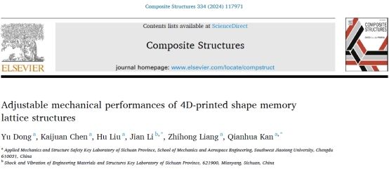 近日,阚前华教授研究小组在4D打印形状记忆点阵结构力学性能调控研究上取得重要进展,相关工作以“Adjustable mechanical performances of 4D-printed shape memory lattice structures”为题发表在材料科学领域TOP期刊《Composite Structures》(IF:6.3)。91直播