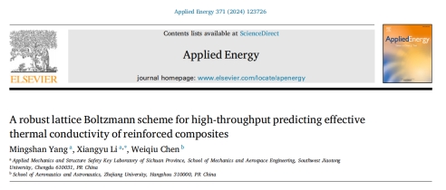 李翔宇教授课题组在复合材料等效热导率预测的数值方法研究方面取得了重要进展。相关成果以“A robust lattice Boltzmann scheme for high-throughput predicting effective thermal conductivity of reinforced composites”为题发表在国际能源领域顶级期刊《Applied Energy》(中科院一区TOP,IF:11.2)。博士研究生杨名山为第一作者,李翔宇教授为通讯作者,浙江大学陈伟球教授为合作作者。