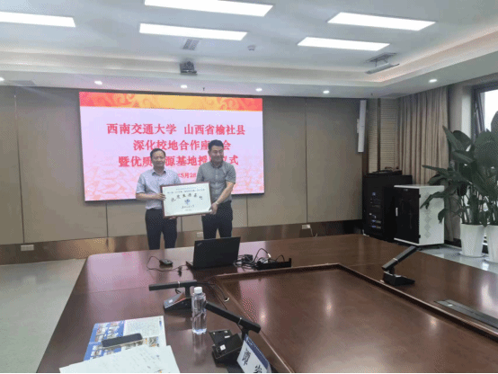 力航学院副院长阚前华教授代表学校向山西省榆社中学授予“优质生源基地”牌