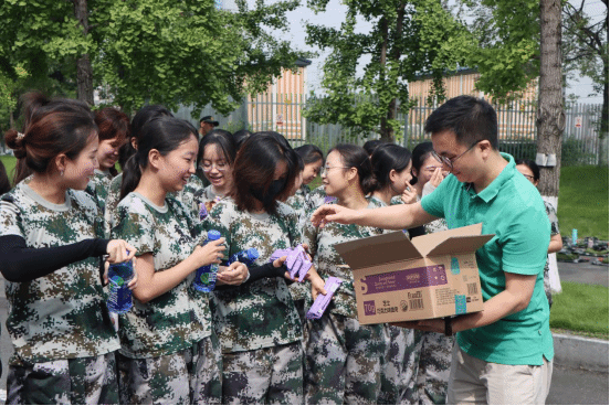 2024年8月18日、21日上午,力航学院党委书记栗民、院长李翔宇、党委副书记孔祥彬、团委书记张容华及2022级本科生辅导员古定翱一行前往学院2022级大三学生的军训场地,亲切慰问正在刻苦训练的同学们。学院充分考虑到军训期间学生们的身体需求,精心为每位同学准备了一瓶运动饮料和一包饼干,帮助他们在严格的训练中及时补充体力,展现了学院对学生的细致关怀。