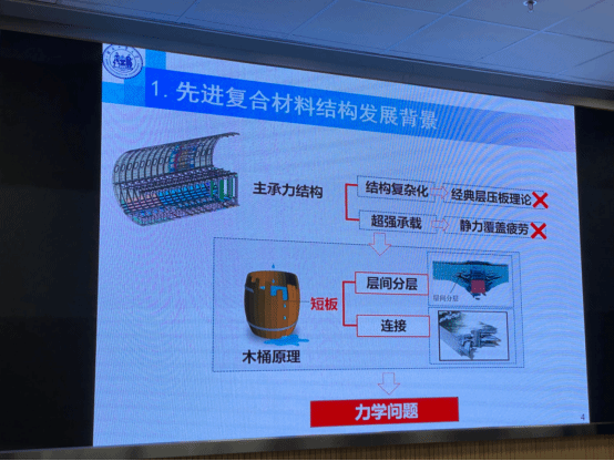 上述关键科学问题大部分是来自于工程型号。让人印象深刻的是,赵老师通过大量实例为大家展示了如何从工程实践中提炼科学问题,并通过专业知识完美解决,再用于指导工程问题的解决或发展出新的技术,并在部分型号中得到了良好应用,最终形成闭环。赵老师的报告除了让大家在复合材料结构领域的研究方向大开眼界之外,还生动阐释了高校中科研的意义并非可以仅仅止步于论文的发表,还可以将其研究成果用于指导并解决关键工程和技术问题,而这种科研方式正是现阶段我国实现科技兴国战略的重要支撑。最后,赵老师对河北工业大学机械工程学院的研究团队和研究方向进行了详细介绍,并欢迎各位老师和同学有机会去河北工业大学机械工程学院进行交流学习。