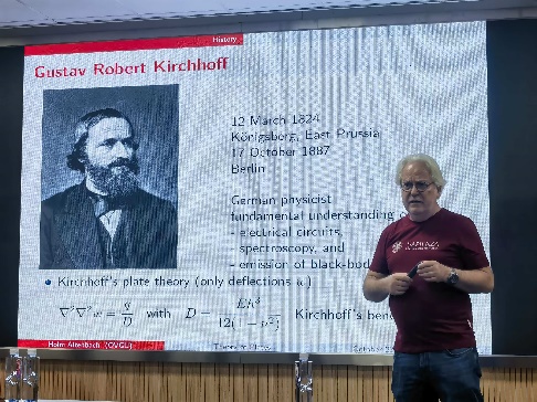 Holm Altenbach教授首先对自己及其所在的高校机构进行了精炼的介绍,随即拉开了讲座的序幕。他深入浅出地分享了欧洲在科学研究领域的先进理论与材料科研的独到方法,深刻剖析了当前数值力学领域所面临的核心挑战。最后教授从古代的萌芽、文艺复兴的勃兴,直至工业革命的飞跃,系统阐述了力学这一学科在不同历史时期的演变与发展。