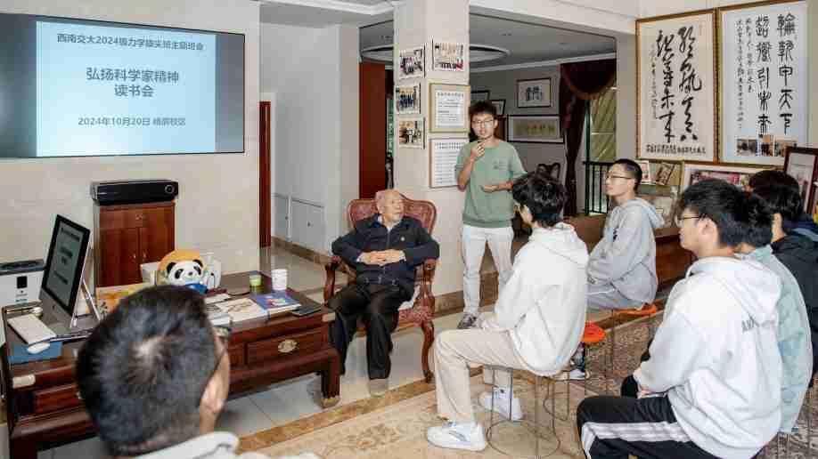 10月20日上午10点,中国科学院院士、中国工程院院士、力学拔尖班名誉班主任沈志云教授在峨眉校区带领力航师生开展学习全国教育大会精神活动。力航学院党委副书记孔祥彬、2024级拔尖班班导师张波等老师以及2024级力学拔尖班同学参加学习。学习会由孔祥彬主持。
