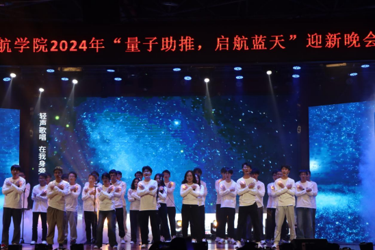 舞台上璀璨的灯光,如同夜空中闪烁的繁星,照亮了本次盛会。两个学院辅导员老师和学生组织骨干带来的舞蹈《等你的回答》,为我们开启了“量子助推,启航蓝天”的序幕。