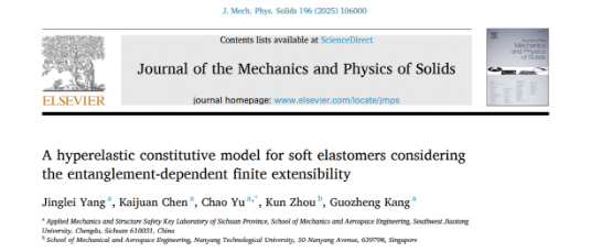 康国政教授团队在软弹性体本构理论方面取得重要进展,相关工作以“A hyperelastic constitutive model for soft elastomers considering the entanglement-dependent finite extensibility” 为题发表在固体力学旗舰期刊《Journal of the Mechanics and Physics of Solids》。91直播