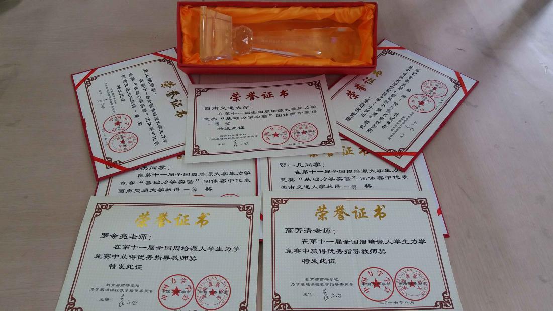 学子在个人赛中表现突出获该项团体赛参赛资格。在“基础力学实验”团体赛中,我校学子团结协作、勇于登峰,喜获团体一等奖,取得我校在该赛事中的最好成绩。同时我校指导教师获邀在竞赛会场发言,在“中国力学大会2017暨庆祝中国力学学会成立60周年(北京)”大会上颁领奖杯荣誉。
