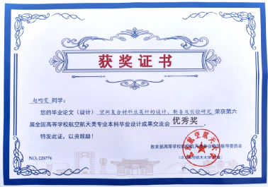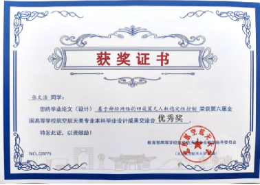 、国防科技大学、空军工程大学、海军航空大学、火箭军工程大学等全国众多知名军地高等院校航空航天类专业本科生的积极参与,共征集351项毕业设计成果。我院赵畇雯以及张文浩同学的毕业设计成果《空间复合材料豆荚杆的设计、制备及实验研究》(指导教师:王晓晨/徐超)、《基于神经网络的四旋翼无人机稳定性控制》(指导教师:胥奇),经小组汇报答辩、现场演示及专家评议等环节,荣获个人项目优秀奖,展示了我院飞行器设计与工程专业本科生较为扎实的专业功底和出色的创新能力。
