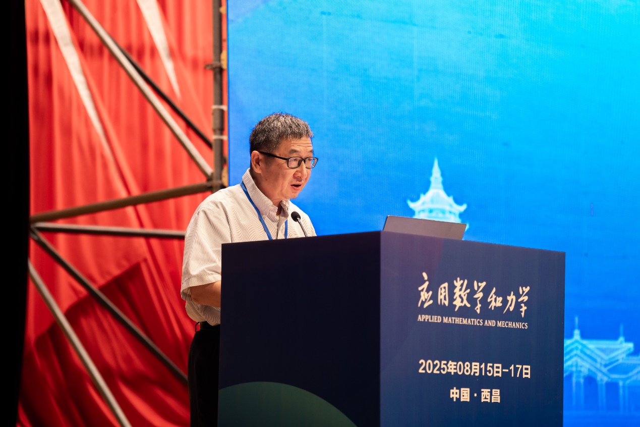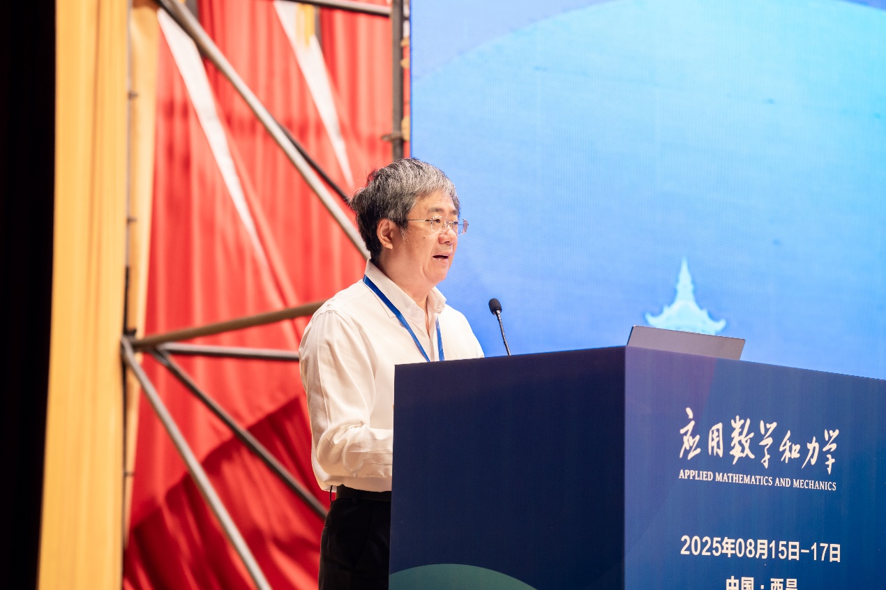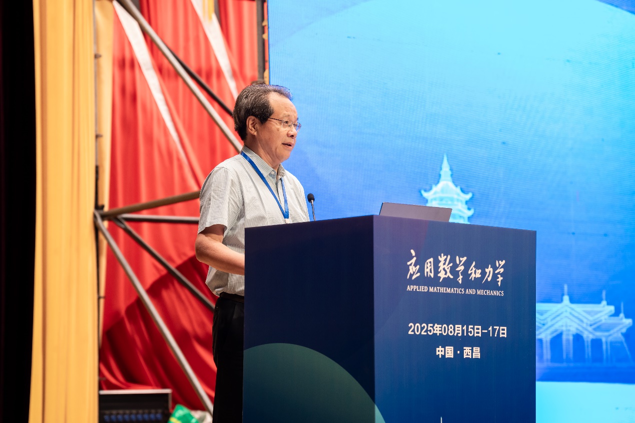中国力学学会理事长、中国科学院力学研究所何国威研究员代表学会致辞,对大会的顺利召开表示热烈祝贺。他指出,数学与力学如同鸟之双翼,密不可分、相辅相成。老一辈力学家善于运用应用数学工具破解科学难题,而今面对人工智能与机器学习蓬勃发展的时代机遇,更应推动AI与数学、力学深度融合,拓展研究边界。他强调,中国力学学会将持续推动高水平学术会议与期刊建设,积极响应国家2035建成科技强国的战略目标。