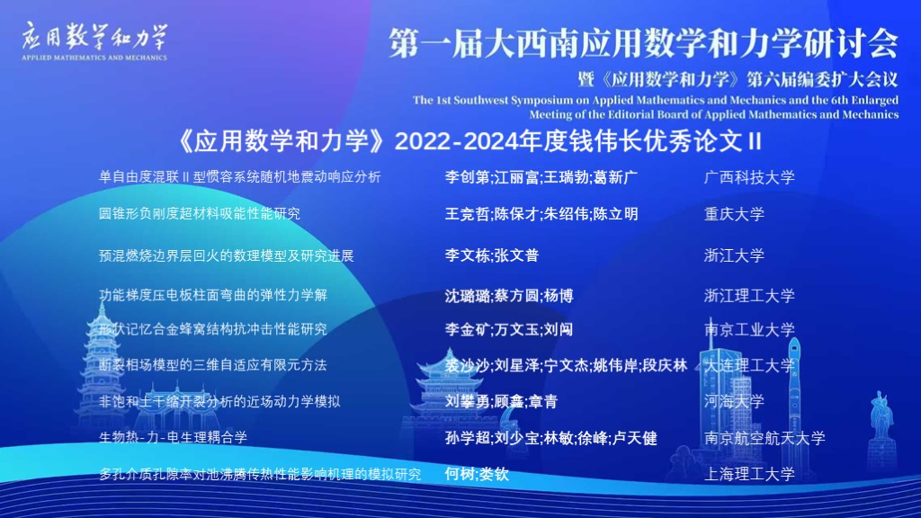 《应用数学和力学》2022-2024年度钱伟长优秀论文
