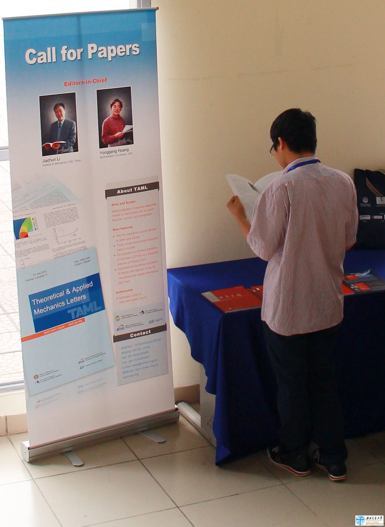 Theor. Appl. Mech. Lett.在14ACFM上宣传  亚洲流体力学委员会于1980年由中国周培源、日本佐藤和印度纳拉希姆哈教授创立,迄今已有30余年,它是国际理论与应用力学联合会的联属组织,我国林同骥、周恒、崔尔杰先生曾相继在委员会任职,并于1983年和1998年在北京和深圳成功主办第二届和第八届亚洲流体力学大会。30多年来,经过亚洲流体力学委员会和亚太国家科学家的共同努力,共召开了十四届大会,亚太地区发展中国家流体力学的基础研究和工程应用取得显著进展,并开始关注学科交叉的前沿课题和可持续发展的相关领域研究,我国流体力学界的学者积极参与亚洲流体力学会议的学术交流,并正发挥着愈益重要的作用。