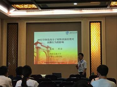 我院蒋晗教授,范晨光副教授及4名博士生参加了此次会议并作学术报告。其中,蒋晗教授介绍了3D打印制造高分子材料表面纹理对刮擦行为影响的最新研究进展;朱忠猛博士汇报了高延展弹性体与硬质基底粘接界面剪切破坏的研究成果;程前博士介绍了多功能刮擦实验设备研发与应用;代成栋博士报告了基于光学DIC的悬臂板结构的损伤识别。