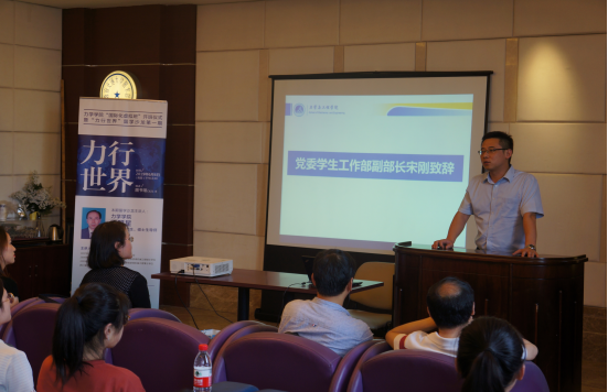 接下来,党委学生工作部副部长宋刚老师致辞,他表示国际化工作也是学生工作部的一项重点工作,近年来学工部也致力于为全校学生提供更多海外交流、学习的机会,他鼓励力学的同学们用好学校、学院的平台与资源,不断提升专业竞争力和综合素质,为国家、学校、学院建设舔砖加瓦。
