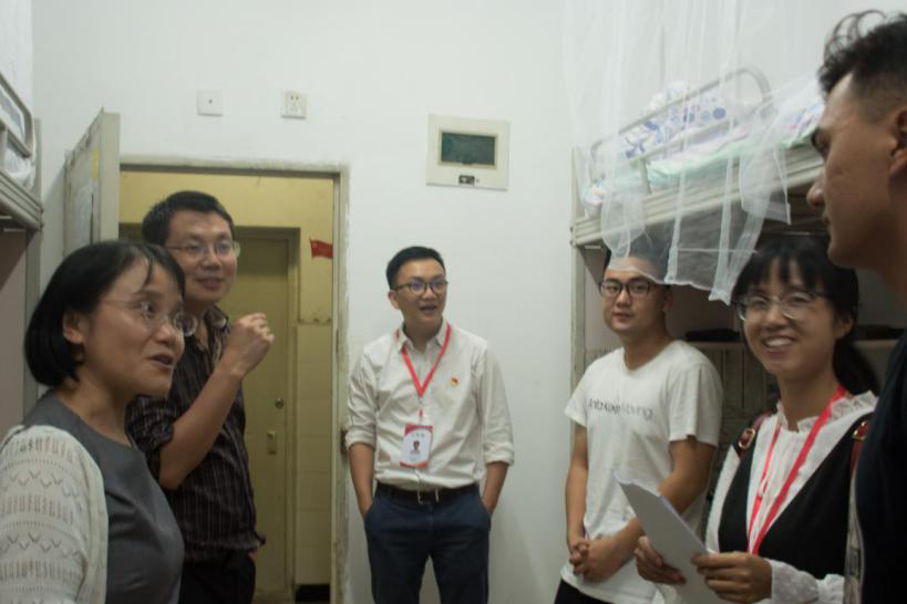 9月5日晚上,学院党委书记栗民,党委副书记孔祥彬,副院长李翔宇以及2019级新生辅导员杨婧走进新生寝室,看望了2019级的新生。老师们和新同学们亲切交谈,老师们详细了解新生的个人情况,强调了宿舍用电、防推销诈骗等方方面面的安全问题,还对新生们的疑惑进行了解答,叮嘱同学们要互帮互助,注意安全,努力学习,在西南交大度过愉快、充实的大学生活。