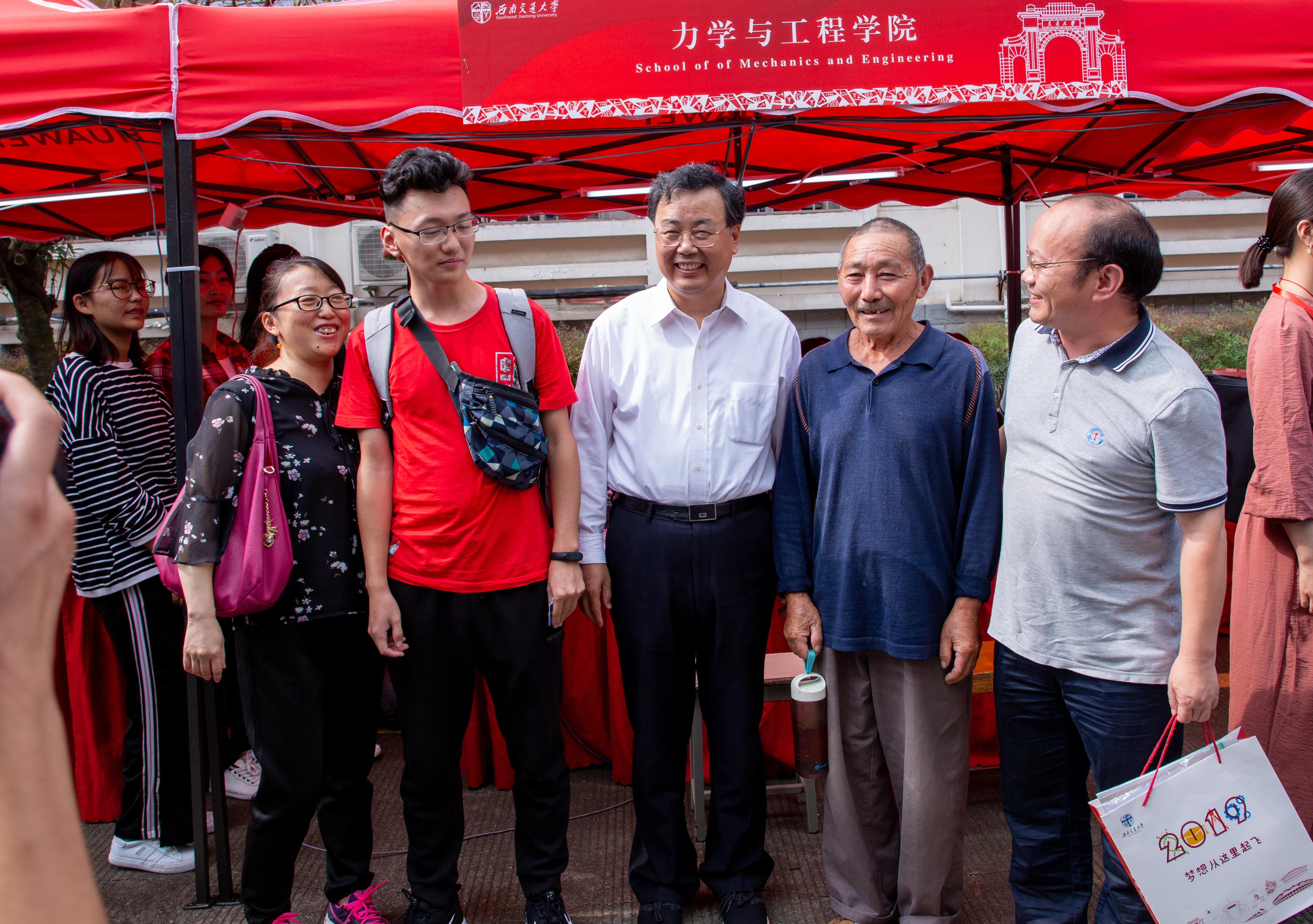 下午,学校党委书记王顺洪、校长杨丹来到各学院迎新点,了解学院迎新情况,孔祥彬老师详细介绍了力学学院这次的迎新工作安排以及新生报到情况