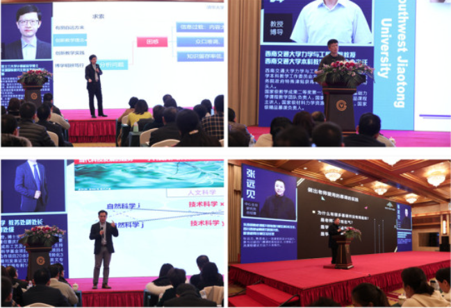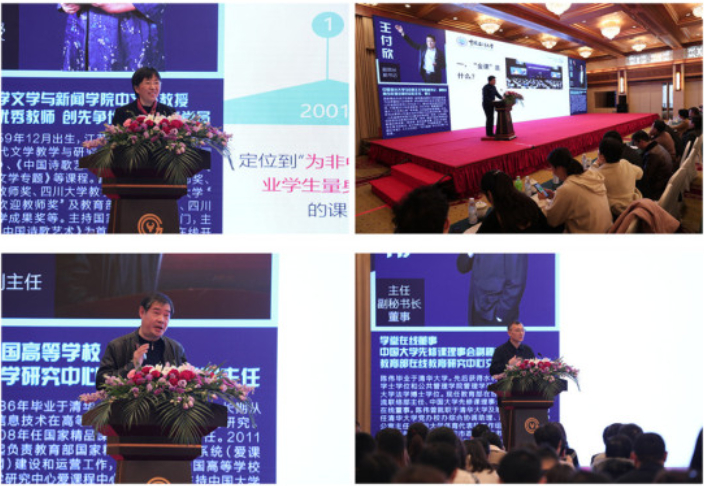 四川大学文学与新闻学院中文系王红教授、中国海洋大学马克思主义学院王付欣副院长、全国高等学校教学研究中心居峰副主任、教育部在线教育研究中心交流联络部陈伟主任分别作大会报告。