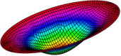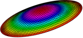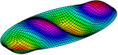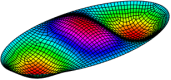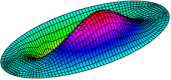 本文单元所预测的简支椭圆板的前6阶振动频率及模态如下: