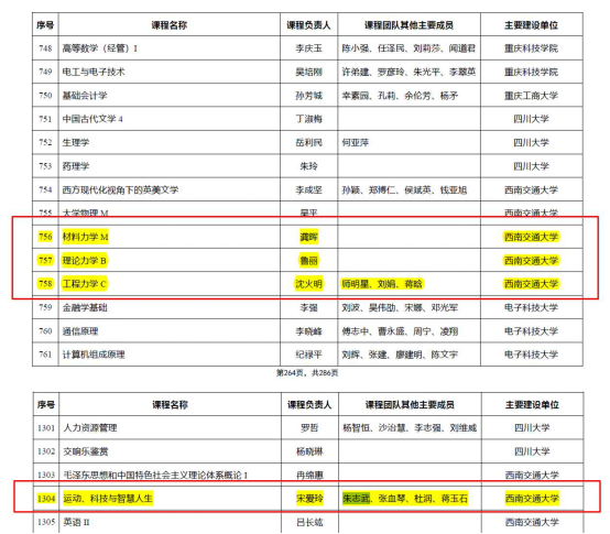 11月25日,教育部正式公布首批国家级一流本科课程认定结果,我院沈火明教授负责的《工程力学》, 龚晖教授负责的《材料力学》和鲁丽副教授负责的《理论力学》3门课程入选,三门课程的入选类别为线上线下混合式一流课程。此外,我院朱志武教授参与建设的《运动、科技与智慧人生》课程入选线下一流课程。