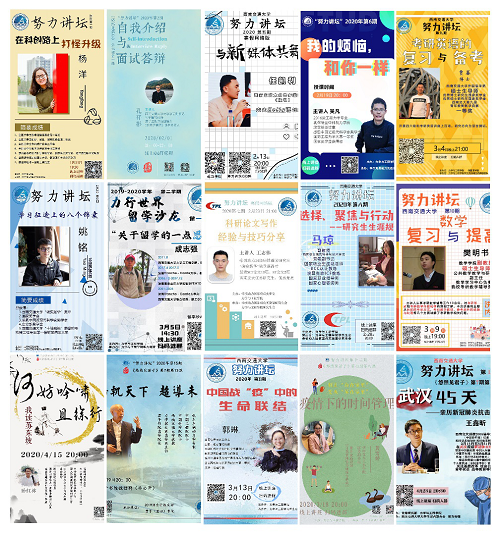 面对今年寒假突如其来的疫情,为响应“停课不停学”的号召,用“严谨治学、严格要求”的双严精神充实同学们的假期,力学学院党委紧急部署、快速行动,由本科生党支部牵头,学生会、研究生会、青协、传媒、君子书院等学生组织配合,系统构建了“努力讲坛”网络版,现已成功举办16期。