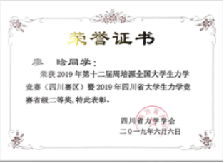 她也多维发展,学习新媒体、主持迎新晚会、参加体育比赛、连续两年拿下学院羽毛球女子单打第一名。她还担任了力学与科技协会竞赛部部长和副会长,参与组织力学创新实验大赛、力学知识竞赛中服务全院同学;担任了20级力学拔尖班的班导生,希望在他们心中种下这颗种子,将来会有更多的力学人站上更高的平台。