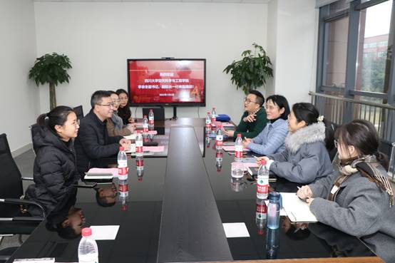与四川大学空天科学与工程学院“三全育人”工作交流座谈会在X30227会议室召开,四川大学空天学院党总支副书记、副院长季袁冬带领学院团委书记马丽娜及辅导员付聪丽、杨焕,与力航学院党委书记栗民、党委副书记孔祥彬、团委书记杨婧及学工组辅导员周子涵、田甜进行了座谈交流。会议由孔祥彬主持。