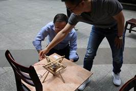 赛题I“力学之美”模型设计与制作的参赛作品可谓是“八仙过海,各显神通”,既有实用且富有创意的减震器成品,也有结构精巧的“三重木塔”。决赛最终按照“设计报告、结构与功能、制作与成型和答辩效果”进行综合评比。赛题I最终评出特等奖1项、一等奖1项、二等奖2项、三等奖3项。