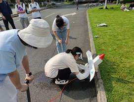 赛题III参赛队需要利用水、压缩空气作为动力设计出符合要求的水火箭滑翔机模型。初赛于2022年5月1日举行,主要考察最大飞行距离。初赛第一名的飞行距离达到了48米之远。在决赛答辩环节,参赛队向评委老师展示了初赛试飞效果和设计原理。赛题III最终评出一等奖1项、二等奖1项、三等奖2项。