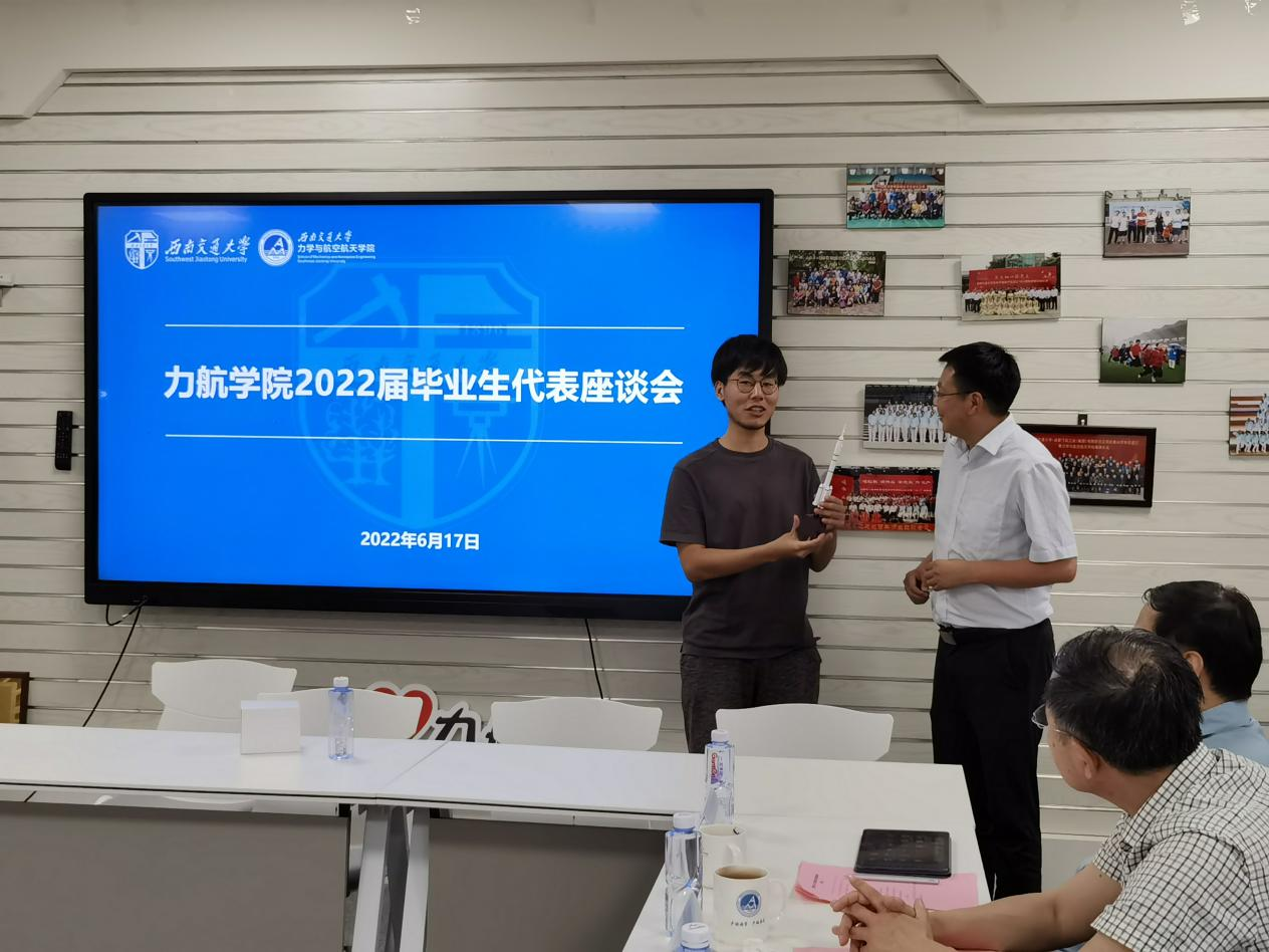 李翔宇院长表示:感谢各位同学,为我们建言献策,让我们能够更好地把工作做得更好。对于即将前往工作单位的同学,衷心地祝愿大家前程似锦;对于继续深造的同学,希望你们能够抗住科研的压力,早日完成从本科的概念、课程的学习,到研究生的针对某一方向深入进行研究的身份转变。只有井打得够深,才会有泉水涌现。对于打算继续考研的同学,希望你们能够不气馁,既然定下了志向,那就只有付出时间和汗水,祝你们金榜题名!同时,也希望毕业生们常与学院联系,力航学院永远是你们的家,祝毕业生们毕业快乐!