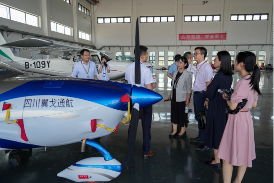 随后,全体成员集体参观了参观红色航空文化馆、飞行员装具室、TOFLY航空俱乐部、飞行模拟机体验、机坪、机库等场地。