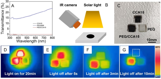 图2 PEG/CCA15复合相变材料优良的光-热性能