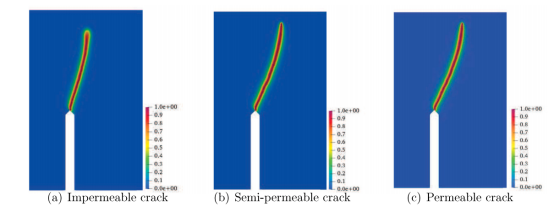 针对压电器件的疲劳断裂问题,研究工作基于Hamilton原理,考虑AT1、AT2两种相场模型,引入电不可穿透、电半穿透和电可穿透三种裂纹面电边界条件构建了压电材料的疲劳断裂相场模型。论文通过引入累积历史变量表征材料在循环荷载作用下断裂韧性的劣化程度,并基于热力学第二定律推导了断裂相场框架下的压电材料本构方程。同时,本论文将可控残差的交替迭代算法(RCSA)推广用于电-弹性力学框架下的疲劳断裂问题的数值求解。该算法在克服整体迭代算法难以收敛问题的同时,相较于“一遍过”的交替迭代算法(SPSA)极大地提升了计算效率和精度。
