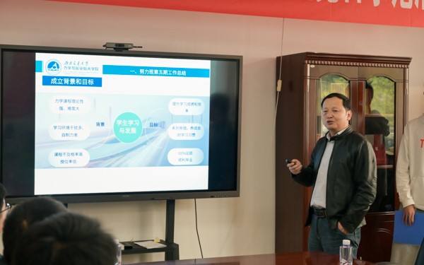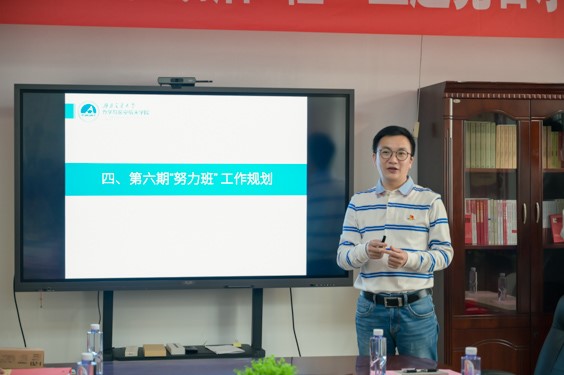 活动第四项,力航学院党委副书记孔祥彬介绍了第六期努力班规划。孔书记首先从往期的退学经历引入,结合自己和学生交流情况,从指导思想、组织架构、评选标准、保障措施这四个方面详细介绍了第六期努力班的规划。