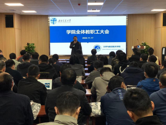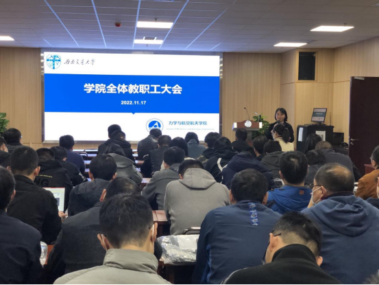 李翔宇院长通报了学院在11月13日召开的“学习二十大·贯彻党代会·推进高质量内涵式发展”专题工作会议相关情况,强调了“教学立院”的重要性,解释了“教学立院”的内涵,指出为达到提高青年教师教学水平这一目的,学院计划进行常态化教学研讨和定期举办教师讲课比赛,真正提高全院教学水平和育人水平。