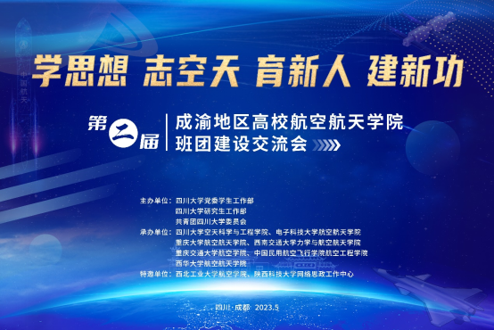为深入学习贯彻习近平新时代中国特色社会主义思想,探索高校班团组织建设的创新思路和实践途径,推动成渝地区高校形成协同育人合力,5月20日下午,“学思想、志空天、育新人、建新功”第二届成渝地区高校航空航天学院班团建设交流会在四川大学空天报告厅成功举办。四川省教育厅宣传思想与统战工作处处长李大鹏、四川大学相关部门负责人以及四川大学、西北工业大学、电子科技大学、重庆大学、91直播