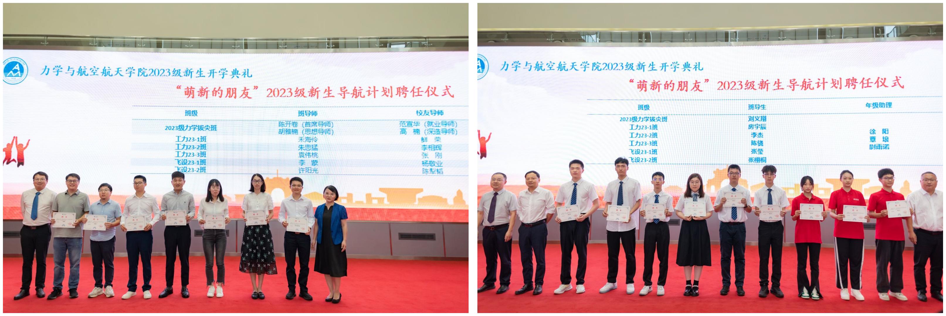 典礼第三项,举行“萌新的朋友”2023级新生导航计划启动仪式暨聘任仪式。为深入推进力航学院四川省“三全育人”综合改革试点工作,加强学院班风、舍风、学风建设和学生党建工作,力航学院自2021级起开展“萌新的朋友”新生导航计划,在教师、校友和高年级学生中选拔优秀前辈为新生提供帮助,解决其学习、生活等方面的问题,让新生能更好更快地适应大学生活。“萌新的朋友”由年级之友、班级之友、宿舍之友和萌新之友构成,目前已为2023级本科生聘任年级之友3人,班级之友20人,宿舍之友30人,萌新之友81人。
