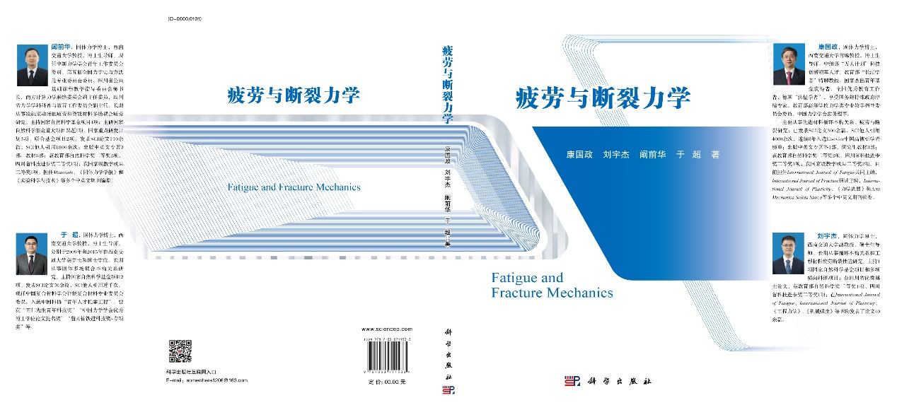 康国政教授、刘宇杰副教授、阚前华教授和于超教授编著的本科生新形态教材《疲劳与断裂力学》由科学出版社正式出版。